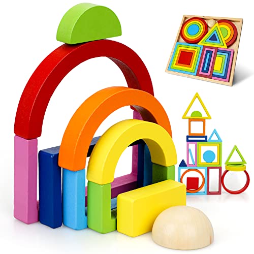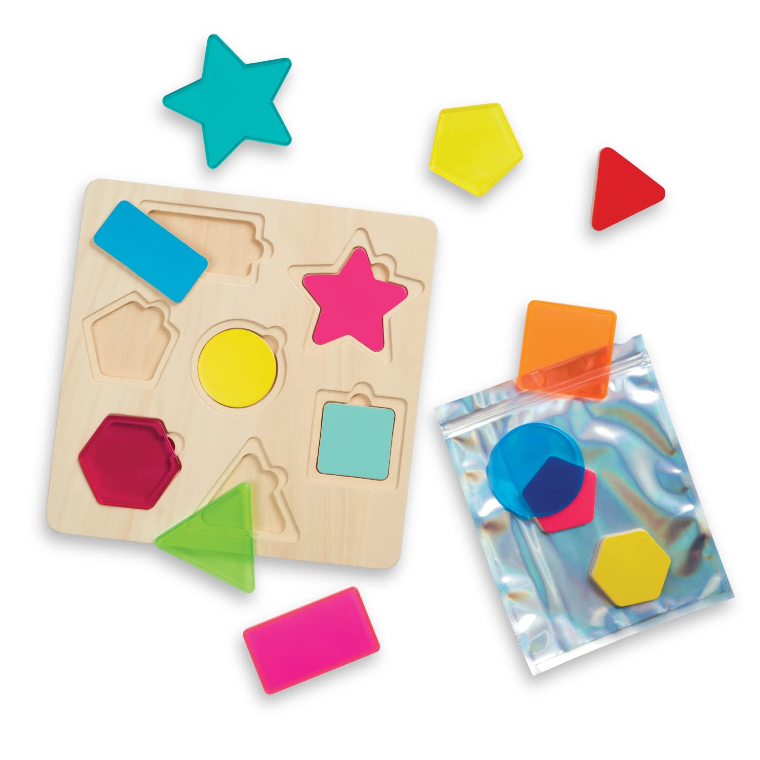 Amazon Com B Toys Rainbow Stack N Sort Shape Sorting Puzzle 14 Geometric Shapes Educational Shape Sorter Puzzles For Toddlers Kids 18 Months Toys Games